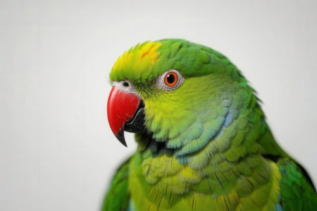Beautiful green parrot on a white background, close-up