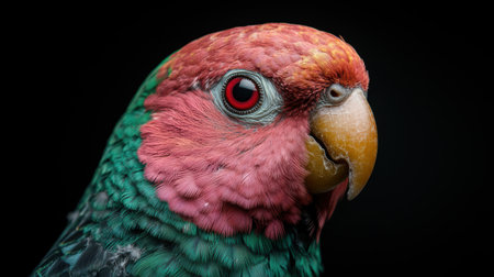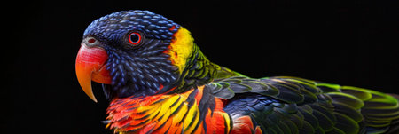 Close-up portrait of colorful lorikeet parrot, vibrant feathers against black background