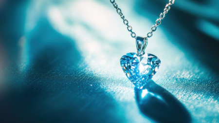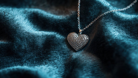 An Elegant heart necklace on soft velvet background with gentle lighting