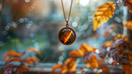 boho-style jewelry, enhance your boho style with this stunning tiger eye stone pendant on a gold chain, a lovely accessory that catches the eye