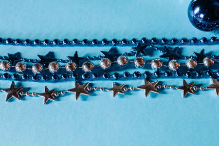 Christmas decorations.a garland of stars on a turquoise background. Christmas and New year concept