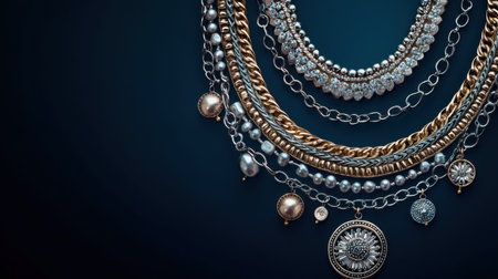 accessory and jewelry trend of layering multiple necklaces or wearing a mix of statement pieces, created with generative ai