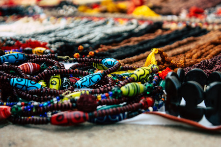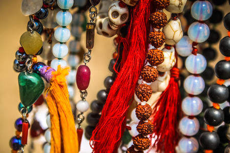 Varanasi India November 10, 2018 View of traditional jewelry, bracelet and necklace sold in the streets of Varanasi in the afternoon