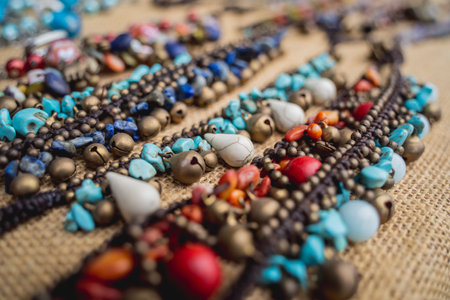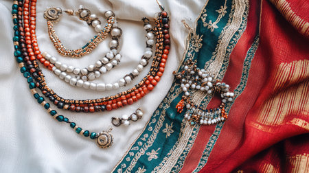 This stunning display features a variety of handcrafted jewelry elegantly laid on luxurious fabric. The vibrant colors and intricate patterns highlight the beauty and artistry of each piece, making it perfect for fashion enthusiasts and gift ideas.
