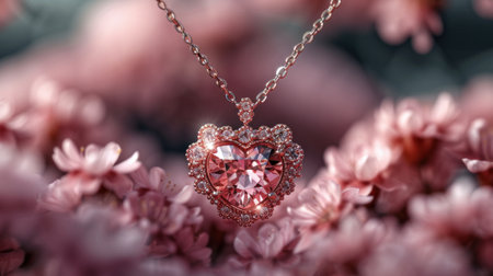 This stunning close-up features a heart-shaped gold necklace adorned with sparkling diamonds, capturing light beautifully against a blurred backdrop.