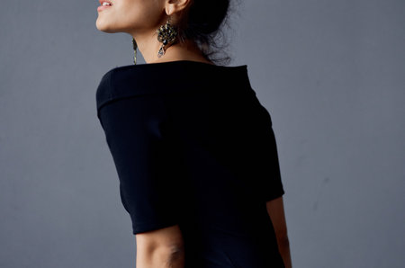 pretty woman earrings jewelry posing black dress lifestyle studio