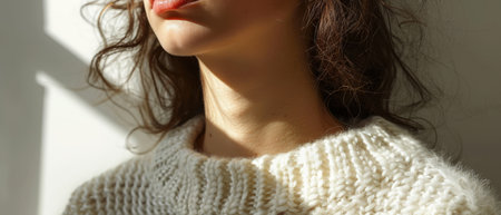 Warm sunlight illuminating womans neck and shoulder