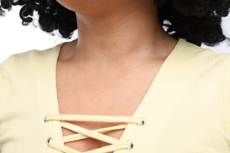 Woman wearing white t shirt showing neck and collarbone