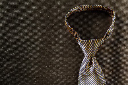 Necktie on dark shadow black background with copy space, International Mens Day and Fathers Day concept.