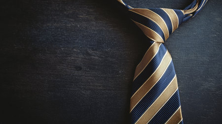 This image features an elegant gold and blue striped necktie placed on a dark surface, showcasing sophistication and style perfect for various formal occasions.