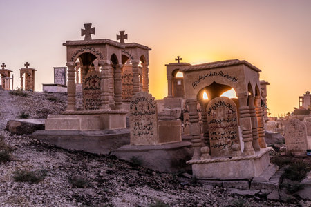 ALQOSH, IRAQ - SEPTEMBER 28, 2022: Cemetery in Alqosh village, Kurdistan Region of Iraq