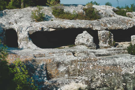 Cave-monastery, catacomb, crypt, sepulcher. The entrance to the dungeon is located at the top, on high mountain
