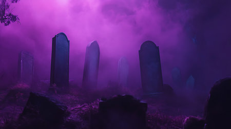 Halloween eerie purple background with minimalistic tombstone designs