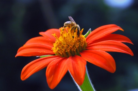 Bee licking nectar, the drink of the gods, from a mint flower in late summer, while the sun is rising. Perfect background picture for all seasons.