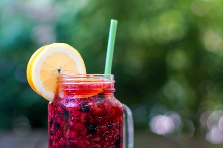 AI Generated. Refreshing summer beverage in glass jar with sunlit background
