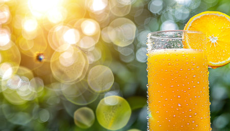 Close up of fresh orange juice in a glass with orange slices for a vibrant citrus drink