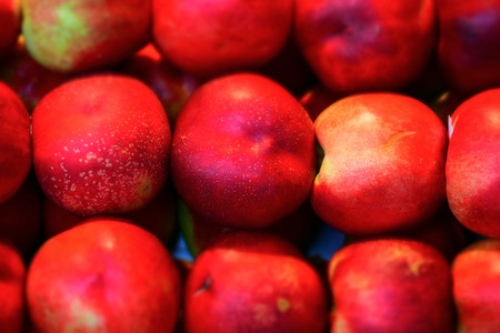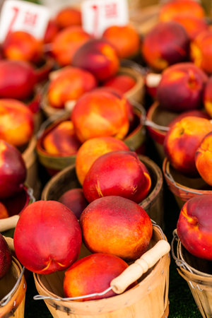 Ripe nectarines. Farmers market. Colorful fruit background