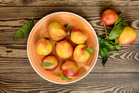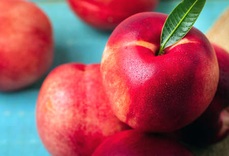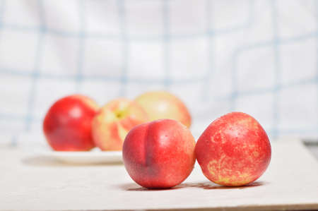 Delicious nectarines on the table. Vitamins are useful.