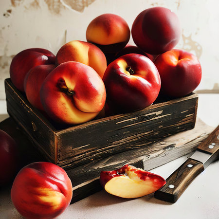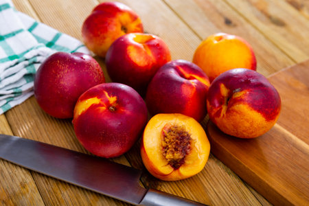 Ripe nectarines on a table in a rustic style