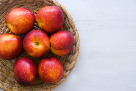Close up of heap of nectarine in the braided basket