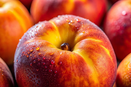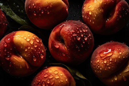 An AI-generated illustration of ripe peaches with water droplets on them