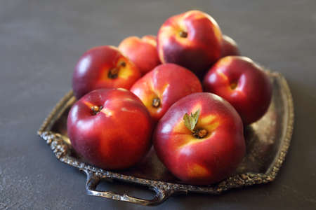 Fresh ripe nectarines on vintage plate
