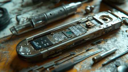 A vibrant collection of disassembled smartphone parts, showcasing colorful surfaces and textures, ideal for technology-themed projects or backgrounds.
