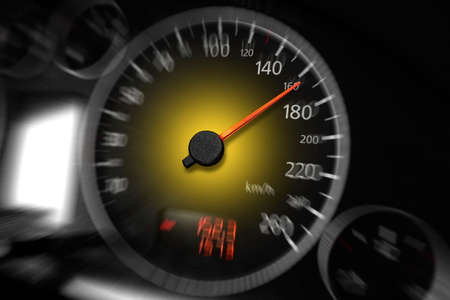 high speed on speedometer in automobile on dark background