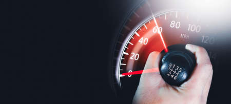 Car speedometer high performance and indicator sweeping to max power speed,dashboard car motion,double exposure automotive concept