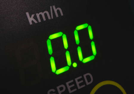 Close up shot with the digital speedometer of a car.