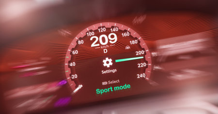 Sportscar dashboard closeup with speedometer