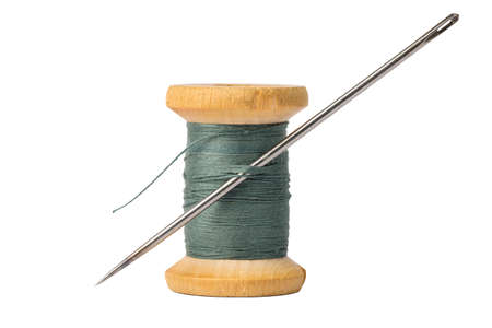 a spool of thread and a needle with a thread