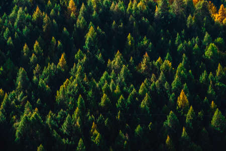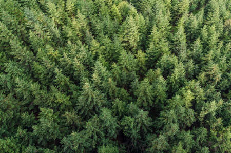 Aerial view of evergreen coniferous forest. Nature background