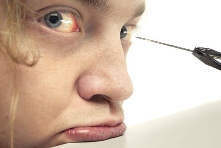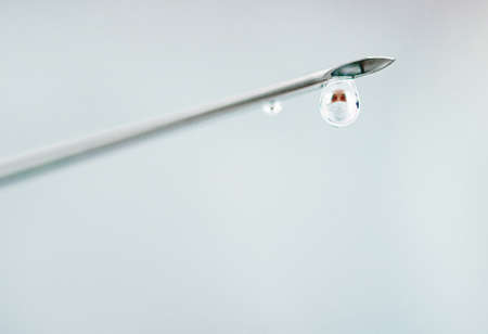 The face behind a clinical breakthrough. Shot of a surgical needle with medication dripping from it.