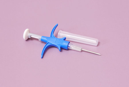 Animal microchip syringe on pink