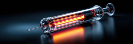 Futuristic glowing syringe presenting advanced health care technology