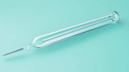 Vintage Glass Syringe on Light Blue Background Capturing Antique Medical History and Aesthetic