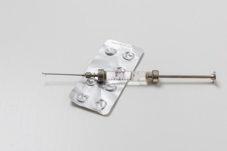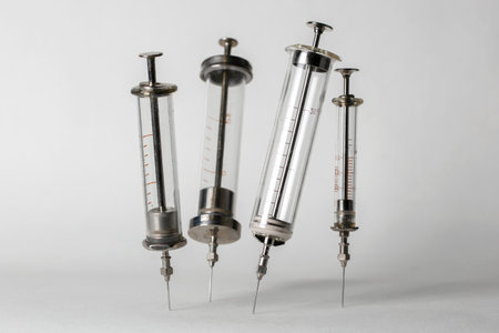 A pair of vintage syringes, one glass and one metal, rest side-by-side, representing a pivotal era in medical history.
