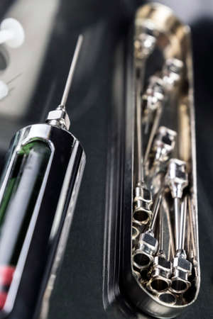 Ampoule and needles from a medical syringe