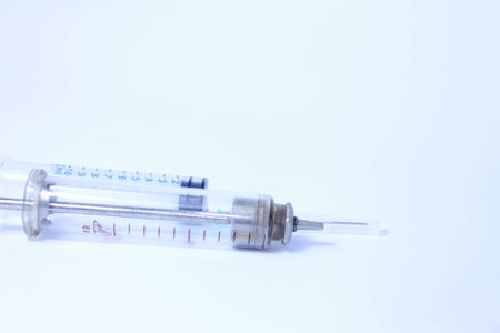 Vintage syringe on white table, medical equipment