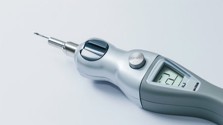 A sleek honey tester refractometer isolated on a gradient blue background