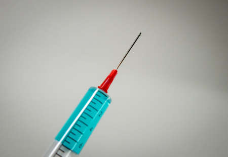 Medical syringe and needle on a light background