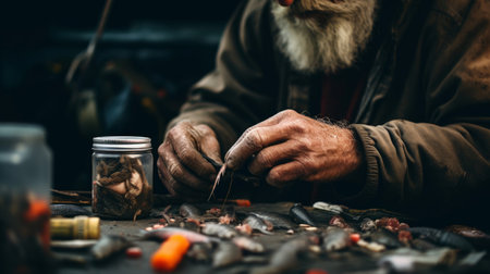 Ancient Fisher: Old Fisherman Sorting Fish. Generative AI