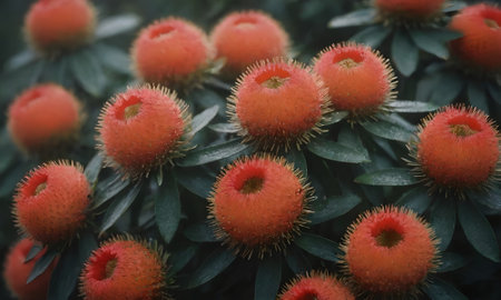 Red Ixora Flower Cluster Blooming in Tropical Garden Close-Up Natural Background Blur Bokeh