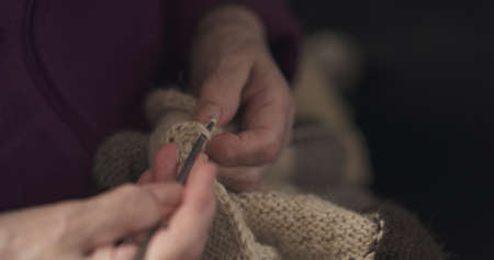 grandmother hands knitting sweater closeup, 4k photo