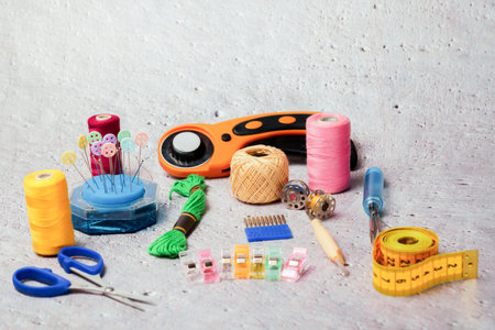 Sewing Items on a cement background