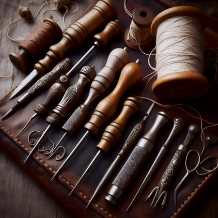 Vintage bookbinding tools, Ai generated image