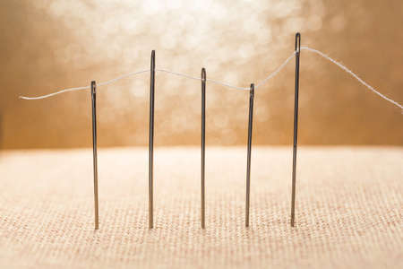 Needle and thread close-up. Macro. Items for the work of a tailor and seamstress. Crafts