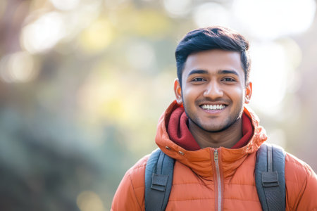 Portrait of a handsome young Indian man smiling at the camera