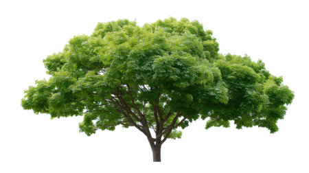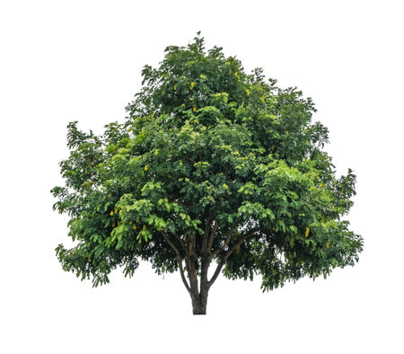 A cut-out of a tree top on a white background with clipping paths. The detailed structure and lush foliage are highlighted, emphasizing the tree's natural beauty and form.